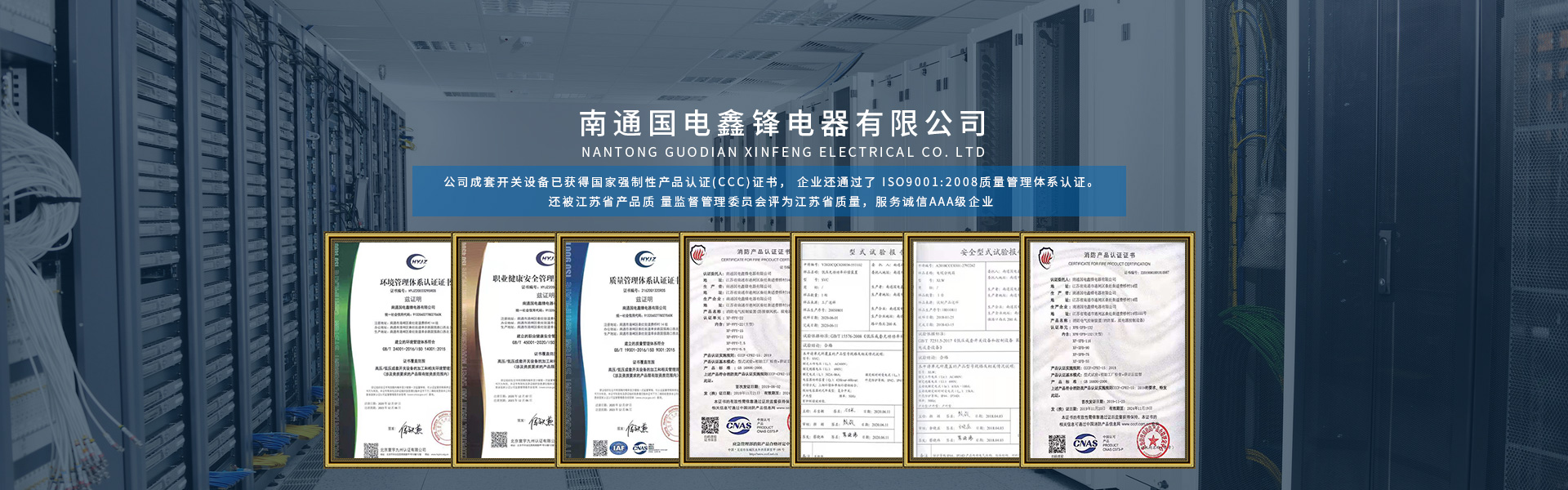南通國(guó)電鑫鋒電器有限公司座落在有中國(guó)江蘇省南通市,南通是全國(guó)首批十四個(gè)沿海對(duì)外開放城市之一,是我國(guó) 民族紡織工業(yè)的搖籃和長(zhǎng)江沿線的港口城市,又是中國(guó)的體育之鄉(xiāng), 教育之鄉(xiāng)崛起中的南通是江海大地上一顆璀燦的明珠。 公司成立于2005年,是專業(yè)生產(chǎn)各類高低壓成套開關(guān)設(shè)備的專業(yè)廠家,公司成套開關(guān)設(shè)備已獲得國(guó)家強(qiáng)制性產(chǎn)品認(rèn)證(CCC)證書, 企業(yè)還通過(guò)了 ISO9001:2008質(zhì)量管理體系認(rèn)證。